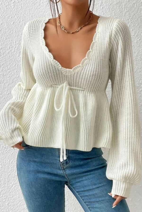 "I never thought a top could transform my wardrobe like this one! It’s not only stylish but incredibly comfortable. The deep V-neck and scalloped design add so much elegance to my everyday outfit. It’s perfect for any occasion, and I always get compliments when I wear it!"