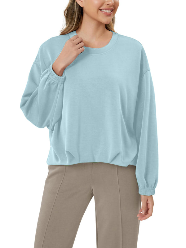 "This sweatshirt is my new favorite! It's incredibly soft and the bubble hem adds a cute touch. I wear it everywhere, from lounging at home to casual outings. Plus, the free shipping when buying two was a great deal!"