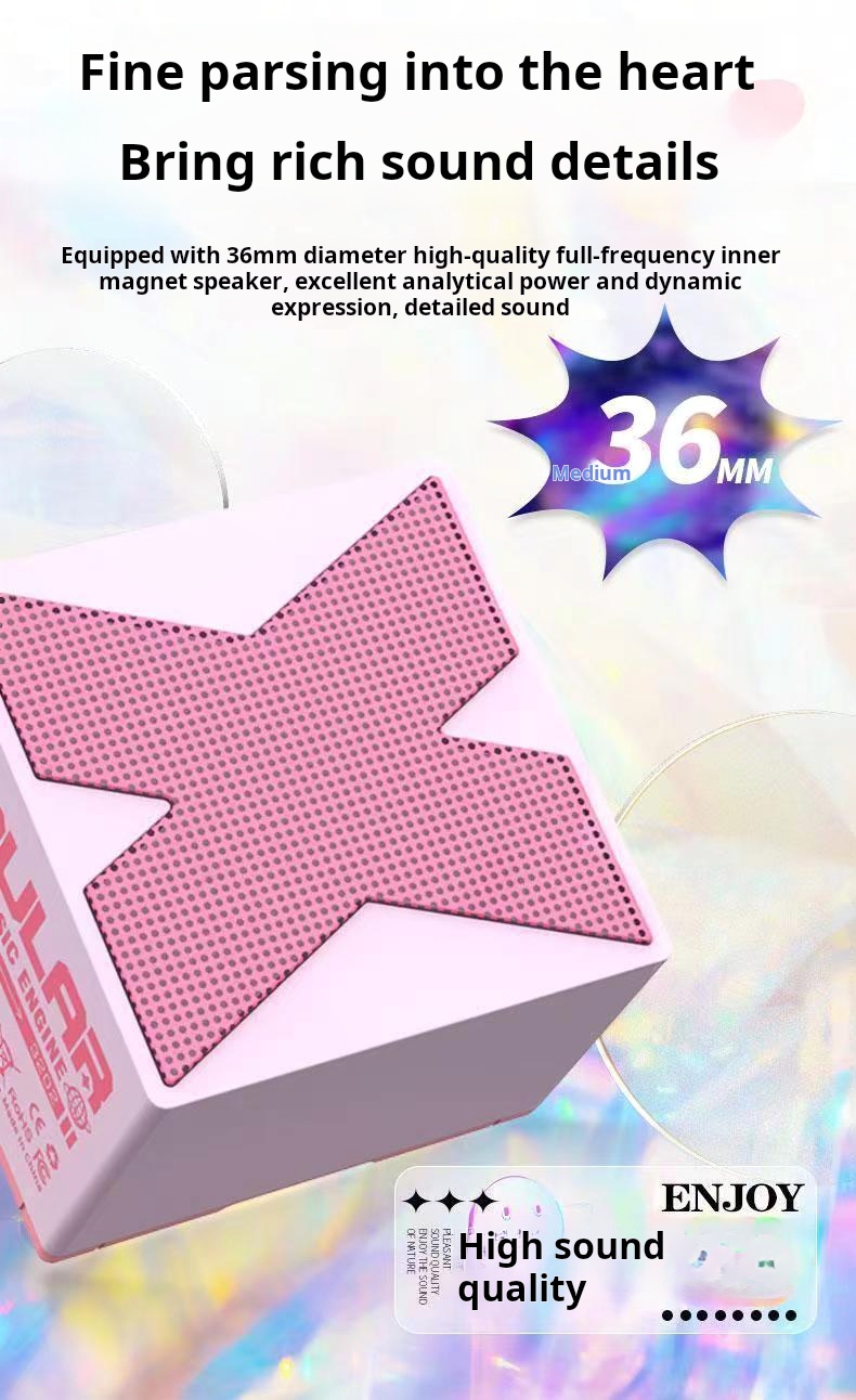 FASHIONABLE & VERSATILE: Available in vibrant green, pink, and blue, this mini speaker complements any style. Its portable size (50*50*36mm) fits in bags or pockets, making it perfect for parties, workouts, or gifting.